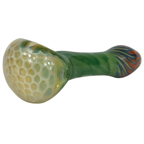 - Tedrow Glass is one of the top glass blowing artists in the Midwest. All of his glass pipes are excellent quality and his artwork makes spoon pipes look stylish. The Inside-Out Honeycomb Glass Pipe has got a lot of weight on the bowl end so that it fits more comfortably in your hand and remains durable. Many glass blowers will make the entire spoon pipe thick of glass to keep it durable, but what Tedrow Glass did differently was using three different layers of glass and add in unique colors to the layers so that you can see super cool color designs as you continue to smoke it. Get this beautiful piece of artwork before we sell out. Every color is unique, which means you'll never see a person smoking from a replica. Every design has it's own unique look to it.